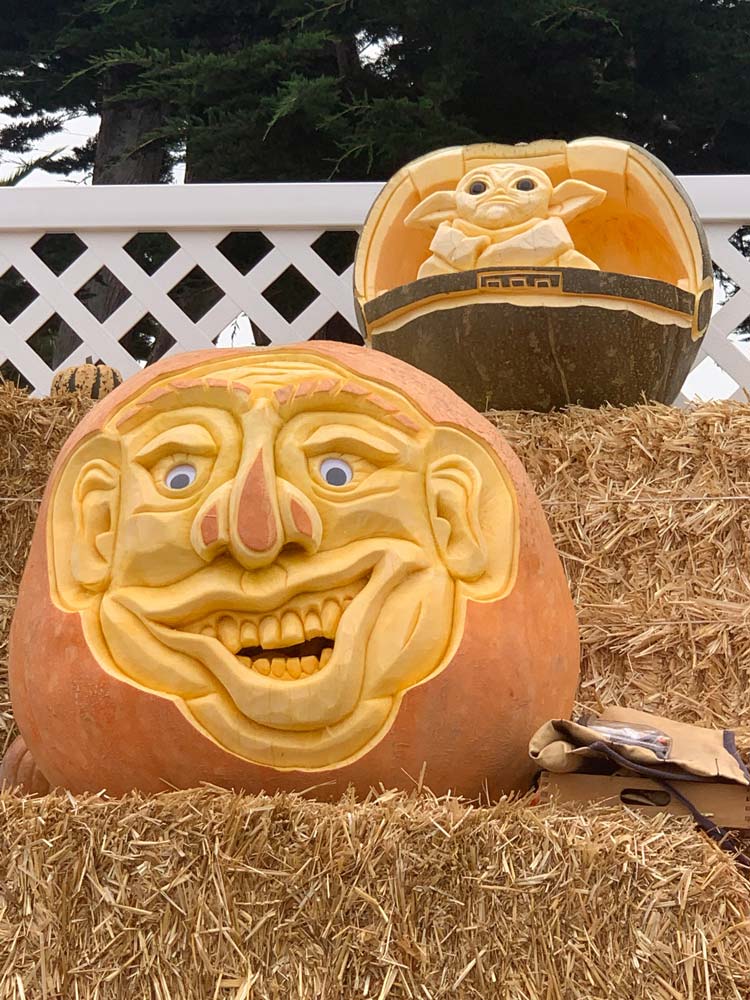 Farmer Mike likes the positive, magical side of Halloween, so many of his pumpkin faces are happy. But he often lets the pumpkin shape dictate the face, “If the pumpkin looks awkward and grumpy, so will the resulting sculpture.” Fan favorites over the seasons have included everything from Spooky Trees to Puff the Magic Dragon, to the Wells Fargo stagecoach. Pop culture characters such as Charlie Brown, Yoda, and Minions have all made pumpkin appearances; no two carvings are ever identical. Over the years Farmer Mike has sculpted hundreds of festival pumpkins, making him one of the most popular and enduring traditions at the event.