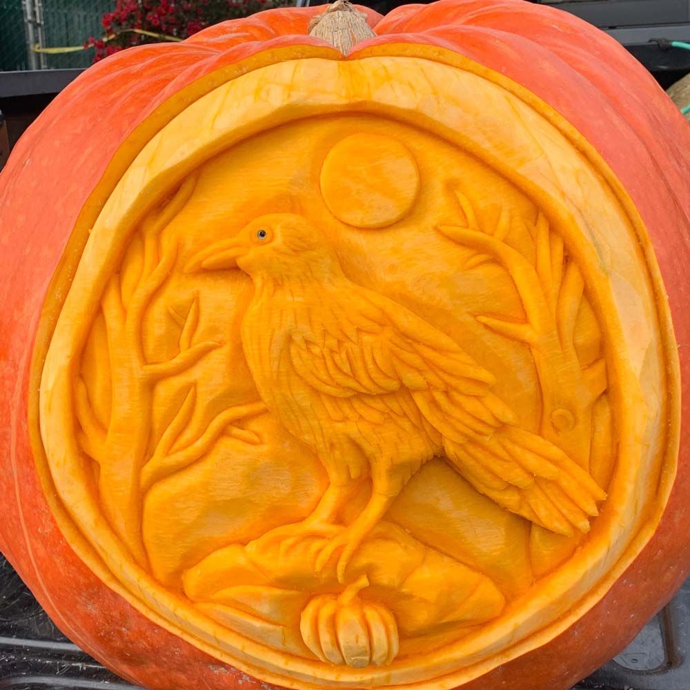 Since Mike only carves the larger, Atlantic Giant strains of pumpkins, the thicker shells provide added depth; better allowing the inner personalities to shine through. Enjoy the process as no two carvings are ever the same.